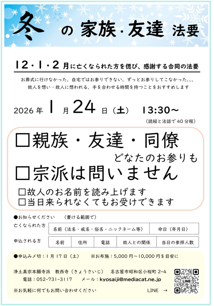 2026年1月24日(土)13:30~(読経と法話で40分程)